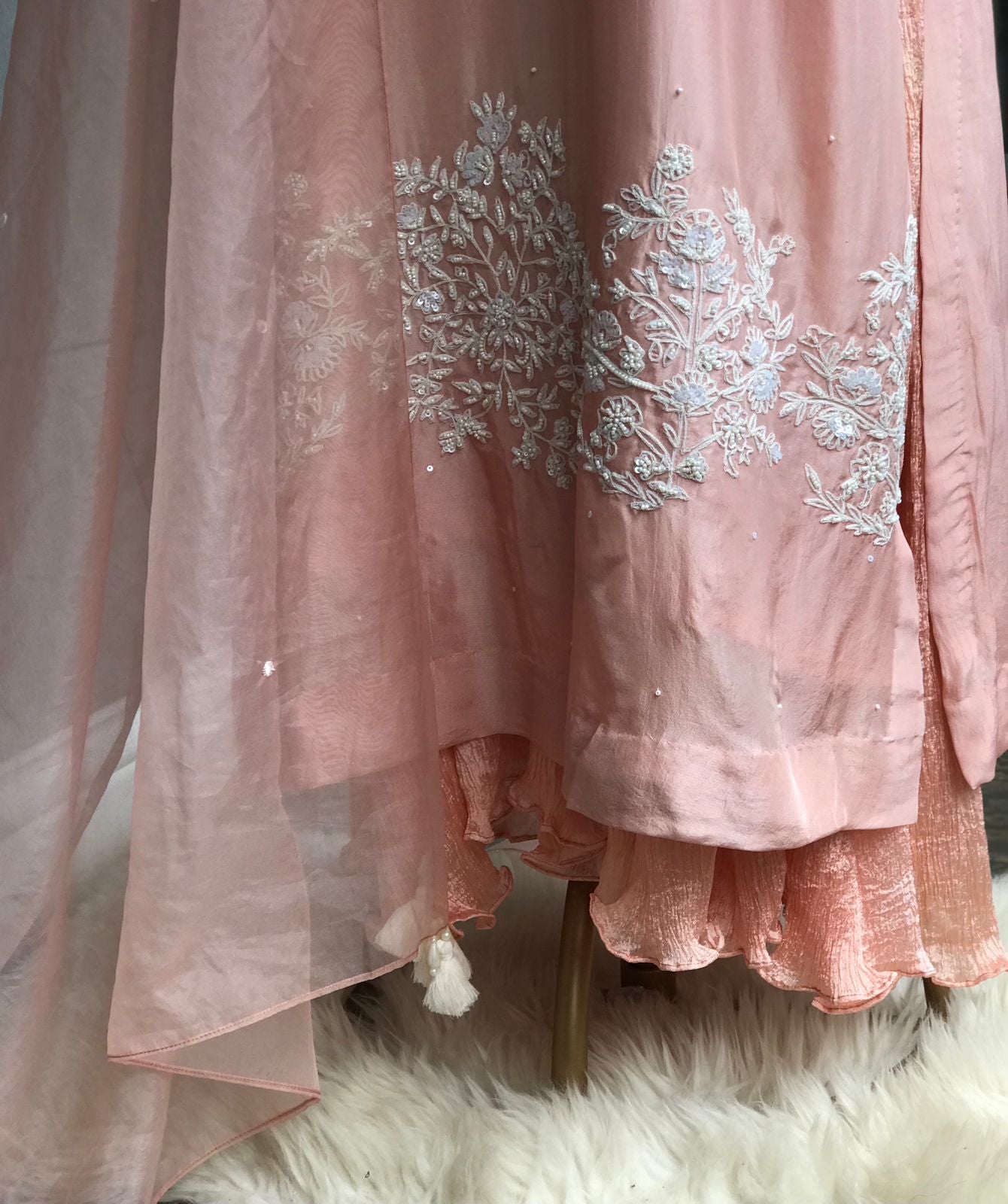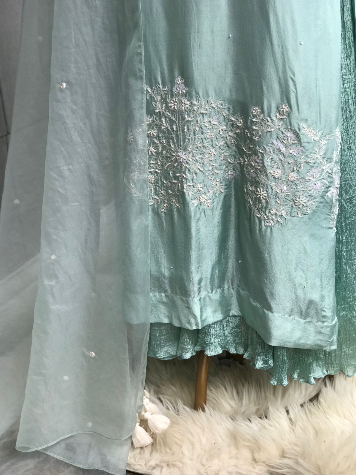 Dupatta : Organza dupatta with pearl spray.